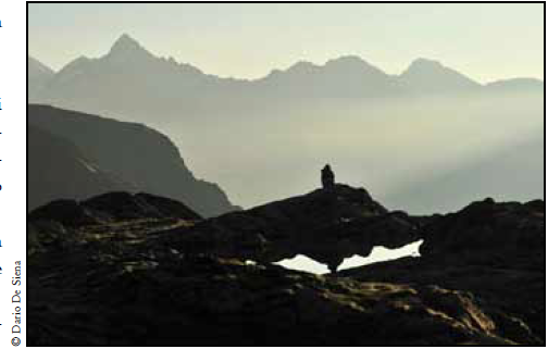 Incuriosito e in parte anche divertito avevo poi visitato alcuni siti, dove avevo trovato un linguaggio che poco aveva a che fare col camminare. Ripensando al mio passato, piuttosto normale, ricordavo che a camminare mi aveva insegnato mia mamma, ad andare in bicicletta senza le rotelle mio padre, sciare e arrampicare mio fratello; ma non lo avevo mai scritto da nessuna parte. Sì, forse avevo pagato da bere dopo essere sceso la prima volta dal Gran Paradiso! Non riuscivo a capire perché con un gruppo più o meno numeroso di persone avrei dovuto camminare in silenzio o ‘consapevolmente’! Che voleva dire? E camminare in modo ‘responsabile’? Perché non avrei potuto mangiare carne se camminavo con alcuni? E perché avrei dovuto fare un certo tipo di ginnastica cinese o una meditazione indiana dopo aver camminato con altri? Io avevo sempre fatto stretching prima di dedicarmi ad una parete o prima di una discesa in neve fresca, però poi rientrato a casa mi cucinavo una bistecca e mi bevevo due bicchieri di rosso. Questo era sbagliato? Avevo sempre camminato quelle montagne da solo, parlando al cane, ma anche al camoscio o alla volpe – una volta ricordo che feci un discorso a una vipera – anche questo era sbagliato? Nel mio camminare, nel tempo, mi sono ritrovato a usare solo le gambe, come anche la canna o i bastoncini; dipendeva dal momento. Ho sempre avuto un passo lento e cadenzato, ma quando ho dovuto recuperare il capretto di stambecco nella gola del torrente avevo corso e anche saltato… avevo rischiato. Per me l’arte era sempre la stessa da quando l’uomo aveva raggiunto la postura eretta: sopravvivere mettendo un piede innanzi all’altro. Sì probabilmente era accaduto come sospettavo, il resto del mondo aveva svoltato ed io non me ne ero accorto: in effetti lo notavo nei fine settimana quando la montagna si affollava di gente delle piane e delle città, che diveniva popolo di camminatori, alpinisti, sciatori, merenderos, conoscitori… per 48 ore! E ogni cinque giorni vedevo quelle 48 ore cambiare, mutarsi in mille modi differenti. Vedevo le Alpi come un nuovo campo di battaglia dove c’erano sempre nuove… ‘armi’ da testare con soldati sempre più strani, facenti parte di tanti piccoli eserciti tutti forti del loro nuovo credo. Alcune pietre rotolarono a valle dal versante di fronte così da riportare il pensiero dove avevo lo sguardo. Il blu fondo del cielo continuava a raccontarmi la sua versione con i suoi mille occhi luccicanti, ormai era tempo da branda e da sonno. Forse domani sarebbe arrivata l’acqua…