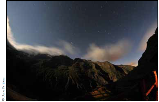 Un rombo sordo mi fece voltare lo sguardo verso quella porzione di stelle dove la luce intermittente di un jet esibiva una rotta; anche il cielo notturno aveva perso la sua pace. Ma in ogni caso quel vago profilo di vette imbrillantate di stelle nella fitta trama nera di quella coperta di cielo mi lasciava sufficientemente estasiato da convincermi che quello fosse il mio posto… malgrado tutto. Il cane si accucciò ringhiando un attacco al pezzo di larice conquistato in legnaia. In quella serata dolce e tiepida i pensieri saltavano in sella a grande velocità: ne apparivano di belli, fantasiosi e positivi come di orrendi, tristi e grotteschi tanto da ritrovarmi con una risata in bocca o la fronte corrucciata. Alcuni pensieri erano misti a ricordi e fantasie che saettavano troppo rapidamente per essere fermati in un ricordo su cui soffermarsi; ma altri erano freschi e nitidi e riguardavano la realtà più prossima del mio essere, il mio passato e tutte le contraddizioni del presente. Pensavo e giocherellavo con un cordino che tenevo in tasca con le chiavi. Chi ero… che ci facevo lì, da quanto ero lassù? Quanti metri di dislivello facevo in un mese… e in un anno? Quanti in vent’anni ne avevo fatti, quanta montagna, quante stagioni, quante passioni, quanti incidenti, quanti amori, quante delusioni erano passati sopra e dentro di me?