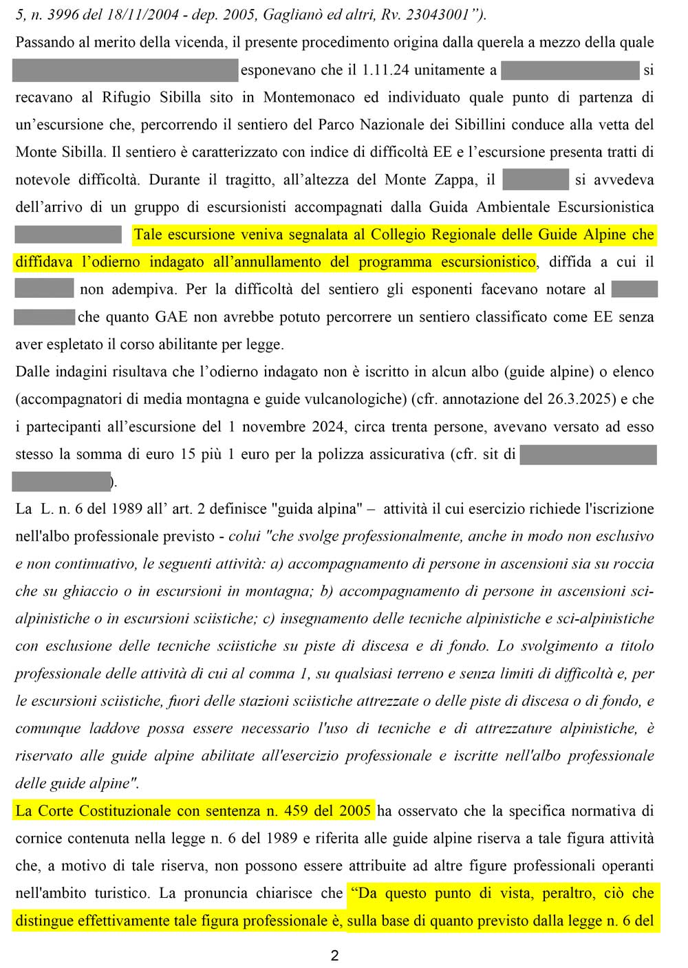 ARCHIVIAZIONE dell’opposizione presentata dalle Guide Alpine – Tribunale Ascoli Piceno 4-2-2026