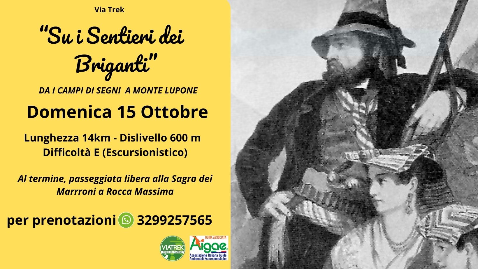 Descrizione: dall’ abitato di Segni ci sposteremo in macchina ai campi di Segni. L’Escursione in programma prevede un giro ad anello che toccherà la sua massima quota a M. Lupone. Il percorso sarà intervallato con storie, racconti ed aneddoti di Briganti che si rifugiavano in questi luoghi.