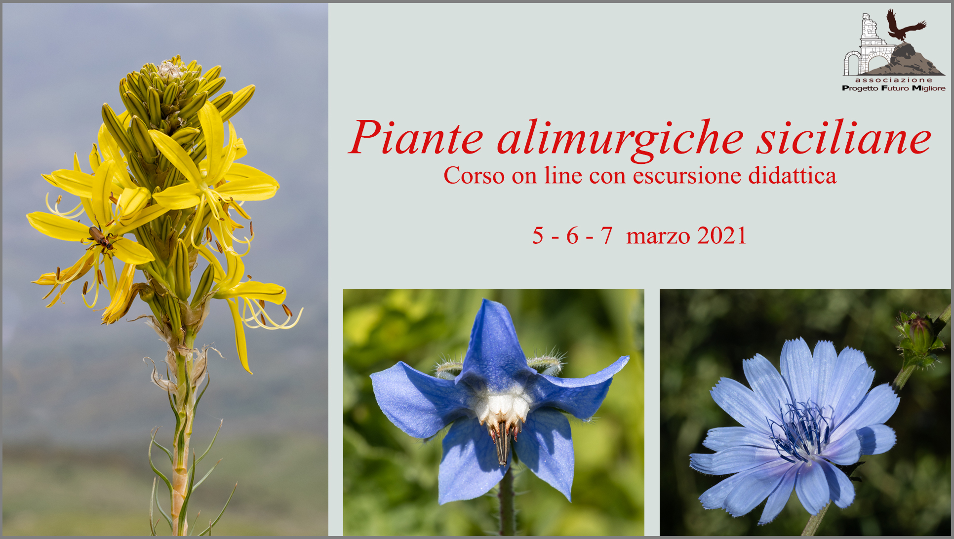 Corso sulle Piante Alimurgiche, organizzato dall’Associazione PFM (Progetto Futuro Migliore) ETS, strutturato su due giornate di lezione online, ed una giornata dedicata all’uscita sul Campo a Bafia, frazione di Castroreale (Me).