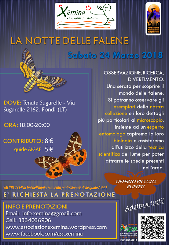 attraverso questa serata le guide AIGAE potranno acquisire conoscenze sugli insetti e in particolare sui lepidotteri utili per le proprie attività sia notturne che diurne.