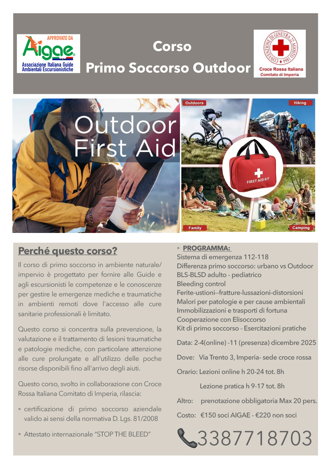 Corso di primo soccorso outdoor valdi per l’81/08 da svolgere sia online che in presenza