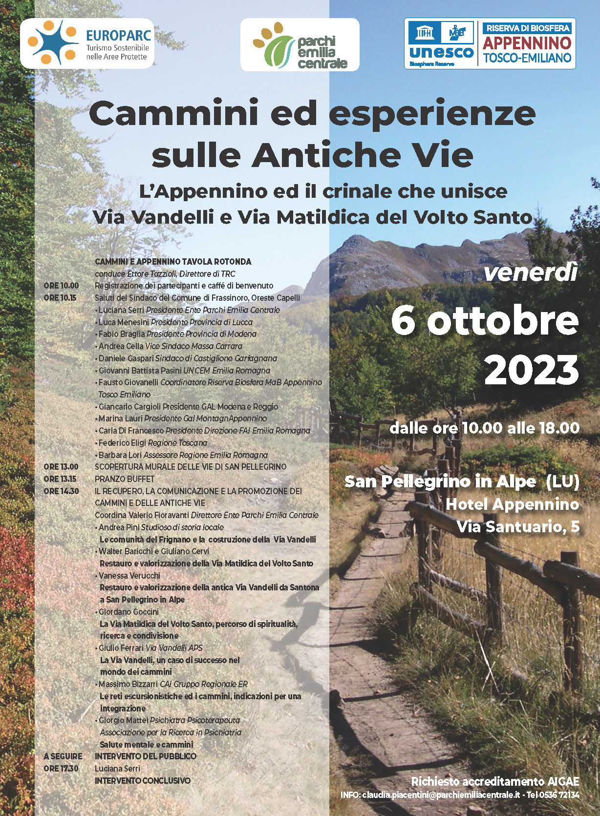 Giornata di studio sui cammini ed esperienze sulle Antiche Vie: L’appennino ed il crinale che unisce Via Vandelli e Via Matildica del Volto Santo.